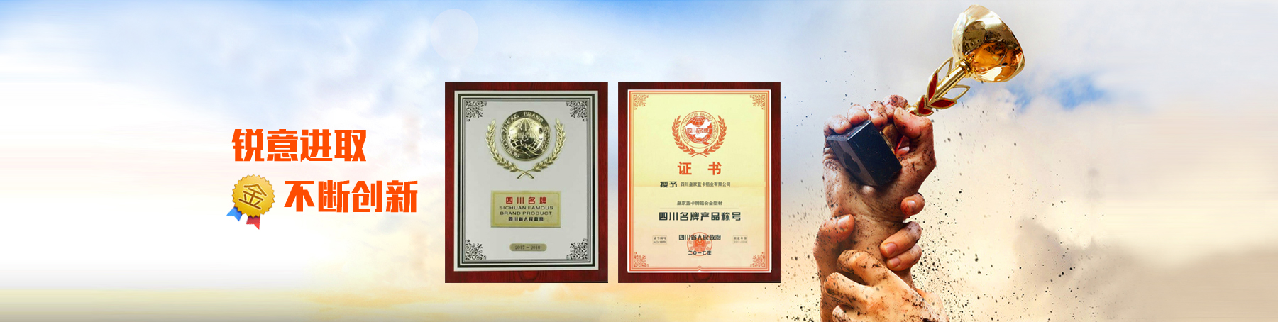 公司占地面積100畝,注冊(cè)商標(biāo)為“皇家藍(lán)卡”,曾獲“四川名牌產(chǎn)品稱號(hào)”、“高新技術(shù)企業(yè)證書”和四川省工程建設(shè)地方標(biāo)準(zhǔn)“參編單位”證書,年生產(chǎn)鋁合金型材能力 50000 噸